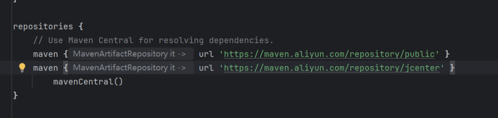 maven { url 'https://maven.aliyun.com/repository/public' }