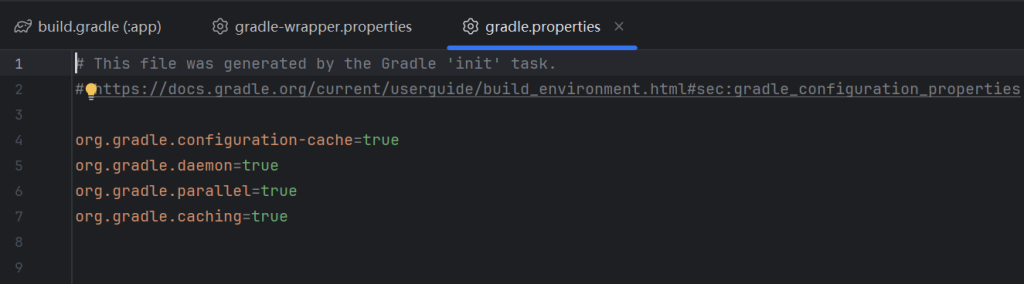 org.gradle.daemon=true          # 启用Gradle守护进程